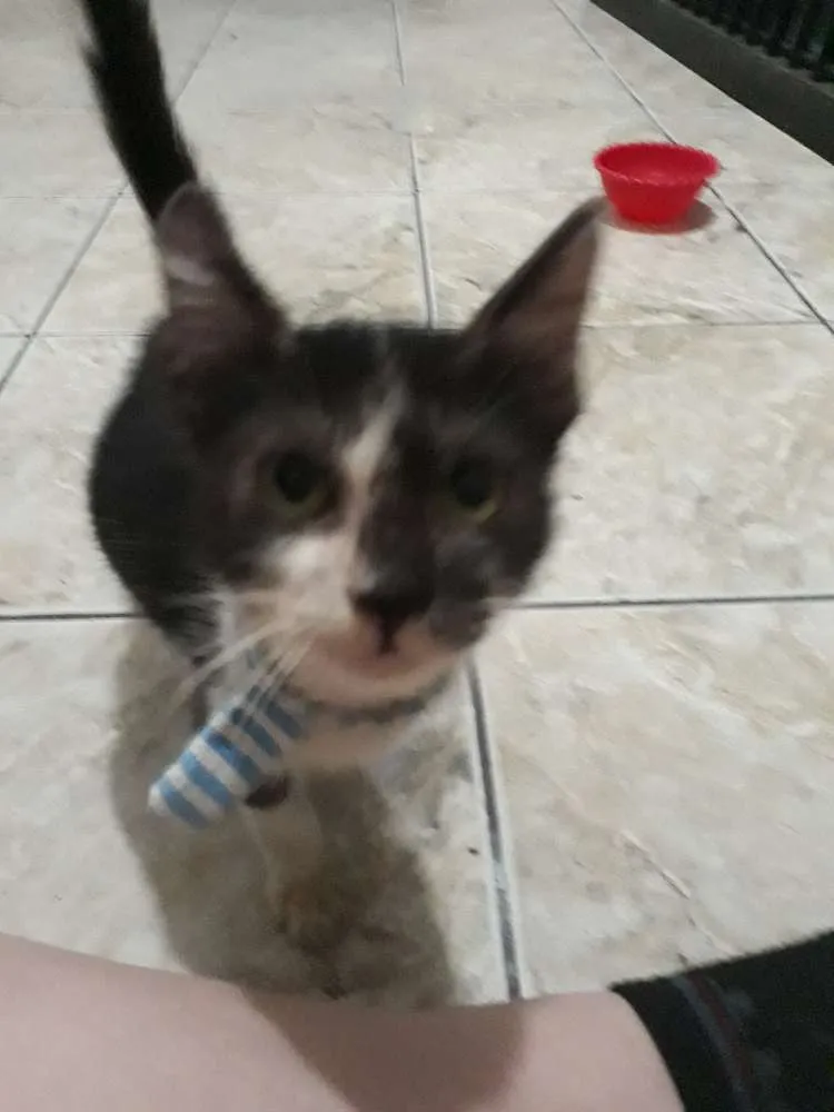 Um gatinho lindo que esta com alguns machucados na orelha, muito calmo e carinhoso, precisa de um lar.