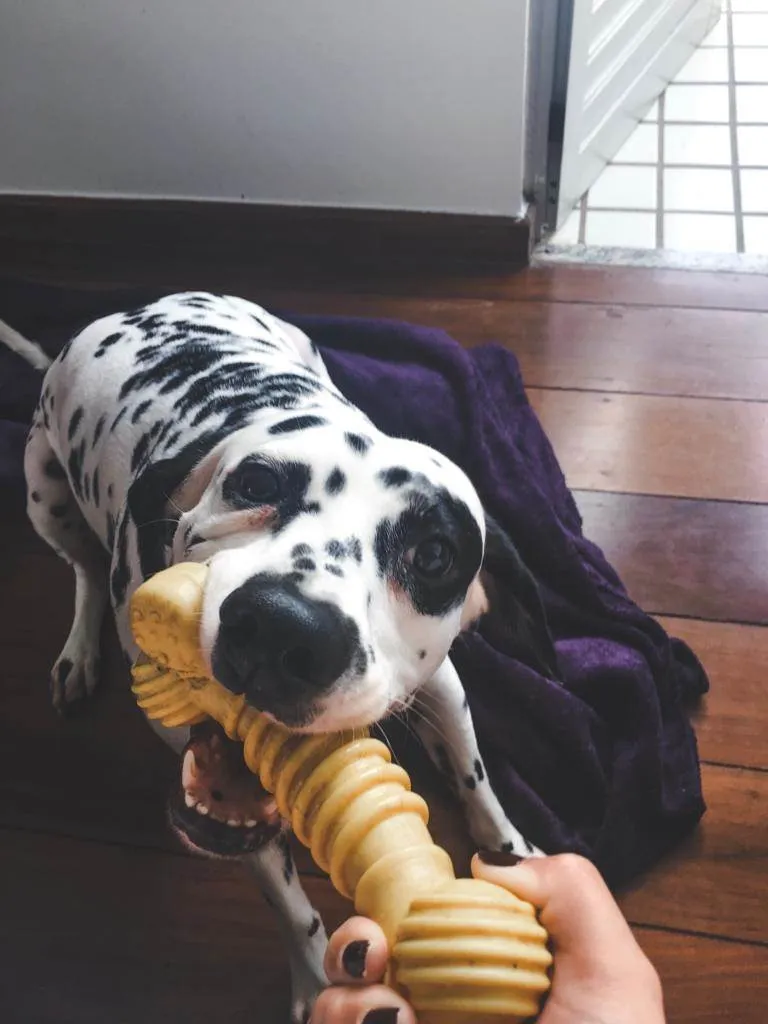 Gaia é uma dálmata extremamente dócil que foi adotada por nossa família aos 2 anos e já está conosco a 4.