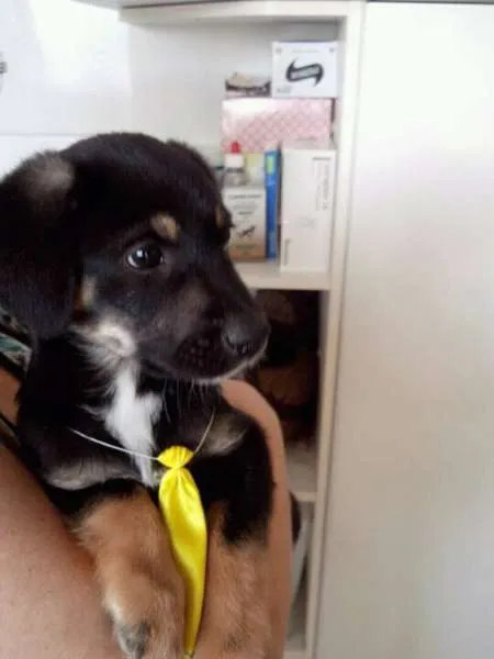 O Nico tem quase dois meses e não conseguimos achar um lugar para ele morar. Já tomou a primeira dose do vermífugo e das vacinas. Pelo que vimos, parece que ele irá ficar de tamanho médio a grande. Ele é bem brincalhão e se dá bem com outros cachorros. Já está se alimentando de ração.