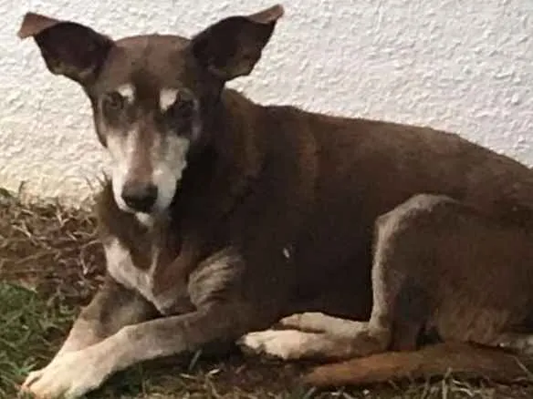 Boa tarde essa cachorra apareceu na porta de casa há 4 dias desde quinta, dia 02/11 Está mancando da pata dianteira direita Parece velhinha. É bem dócil
