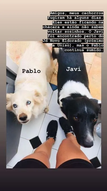 PROCURA-SE Ele fugiu perto da Uniso, mas como era de rua antes de ser adotado, pode ter ido para qualquer parte. O nome dele é Pablo, qualquer ajuda é bem vinda! Ele tem porte medio, pelo creme claro e olhos azuis. ?? Por favor enviem mensagem aqui ou podem entrar em contato com a dona pelo numero 97403-0920. Obrigada ??