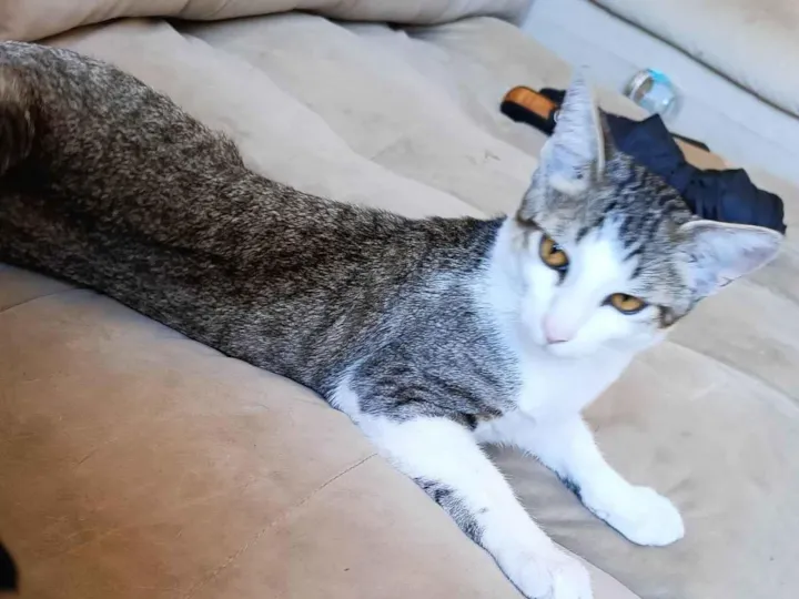 Olá, O Ducky é um gato independente, esperto e brincalhão. Gosta muito de ficar nos lugares mais altos, e curtir uma brisa na janela. Ele é cinza ralado com partes brancas. Tem olhos amarelos e focinho rosa.