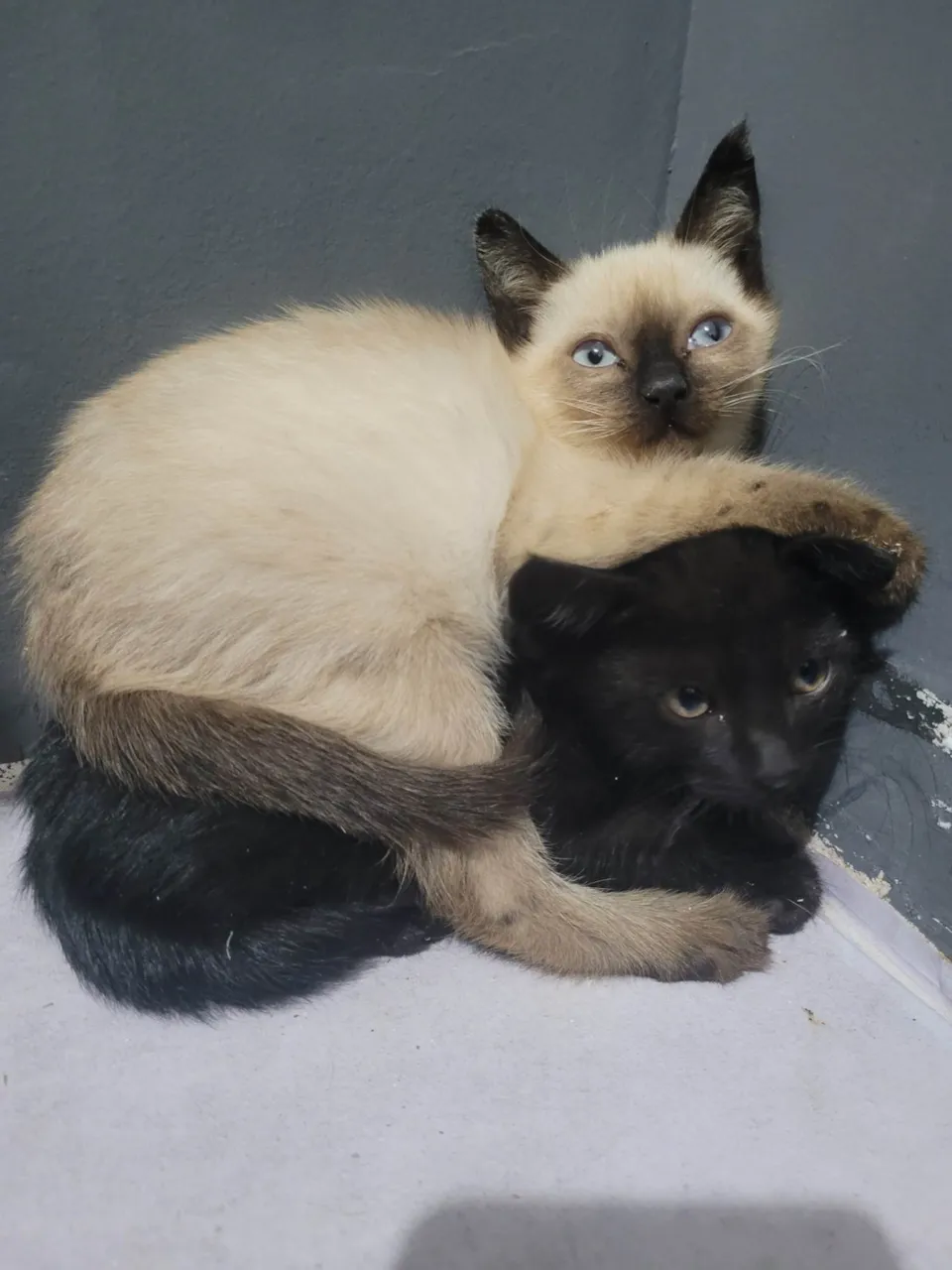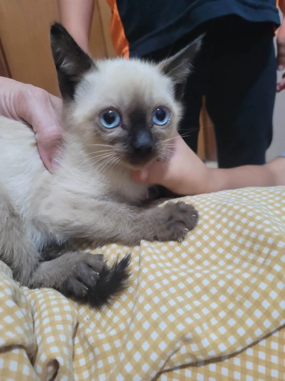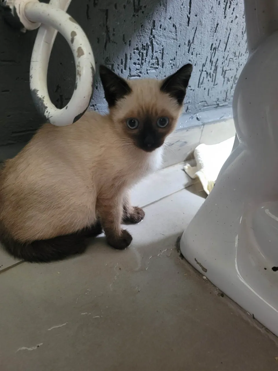 Gatinha siamesa com 2m de idade, já come ração seca, usa caixinha. Foi resgatada com 3 irmãos que já foram doados.Ela se dá bem com outros animais e crianças, só está um pouco assustada ainda, mas como é pequena, com bastante colo resolve. Todos os irmãos doados já estão mansos.Precisa castrar aos 5/6m.