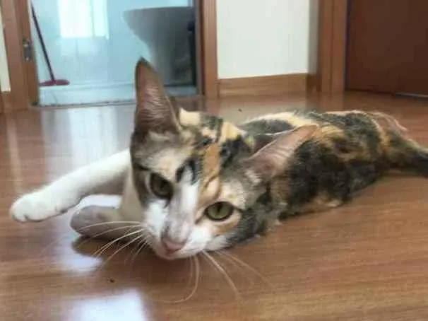 Está gata foi encontrada perto da casa da minha sogra, estava prenha, ficamos com ela até dar cria e desmamar, todos os filhotes já foram doados, restando apenas ela, é super dócil e amorosa, já está vermifugada também.