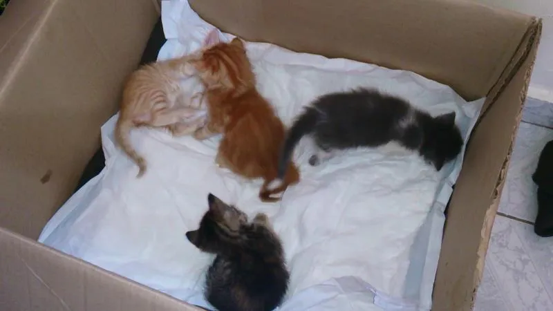 tenho quatro filhotes para doar, sendo um macho e três fêmeas, eles estão com 6 (seis) semanas e já foram vermifugados. Eles já desmamaram e estão comendo papinha misturada com ração sólida.
