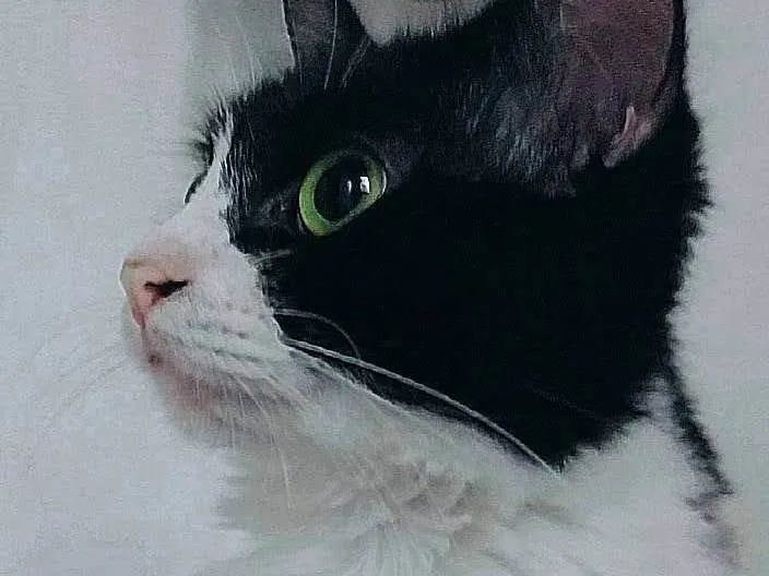 Adora, uma fêmea de quatro anos. Branco e preta. Já castrada e com um temperamento extremamente dócil, só um pouco medrosa.