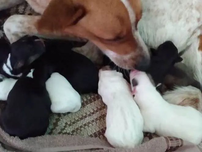Minha cadelinha teve 8 bebês e eles precisam de um lar com bons donos que cuidem e dêem amor para cada um deles. Ainda estão muito pequenos para saírem de perto da mãe, mas se alguém se interessar pode chamar no whatsapp, por lá mandamos mais fotos de cada um também. Temos 3 filhotes branquinhos, 4 pretinhos e 1 marrom.