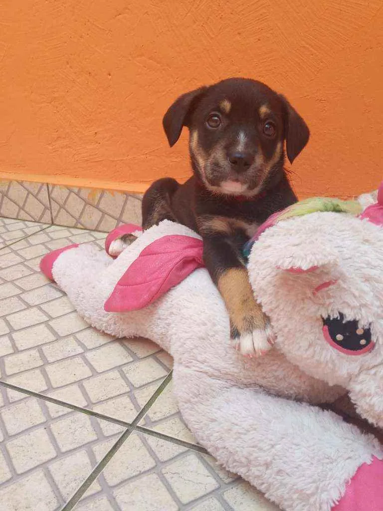 Cachorra porte grande (mistura de rottweiler com pastor alemão) resgatada com seus 9 filhotes, ela está em tratamento será cadastrada e depois irá para adoção. Dos 9 filhotes 7 estão disponíveis para adoção. Nasceram em 17/09/2021, comem ração, estão vermifugados e aprendendo0 usar o tapete higiênico. Tem 5 fêmeas e 2 machos.