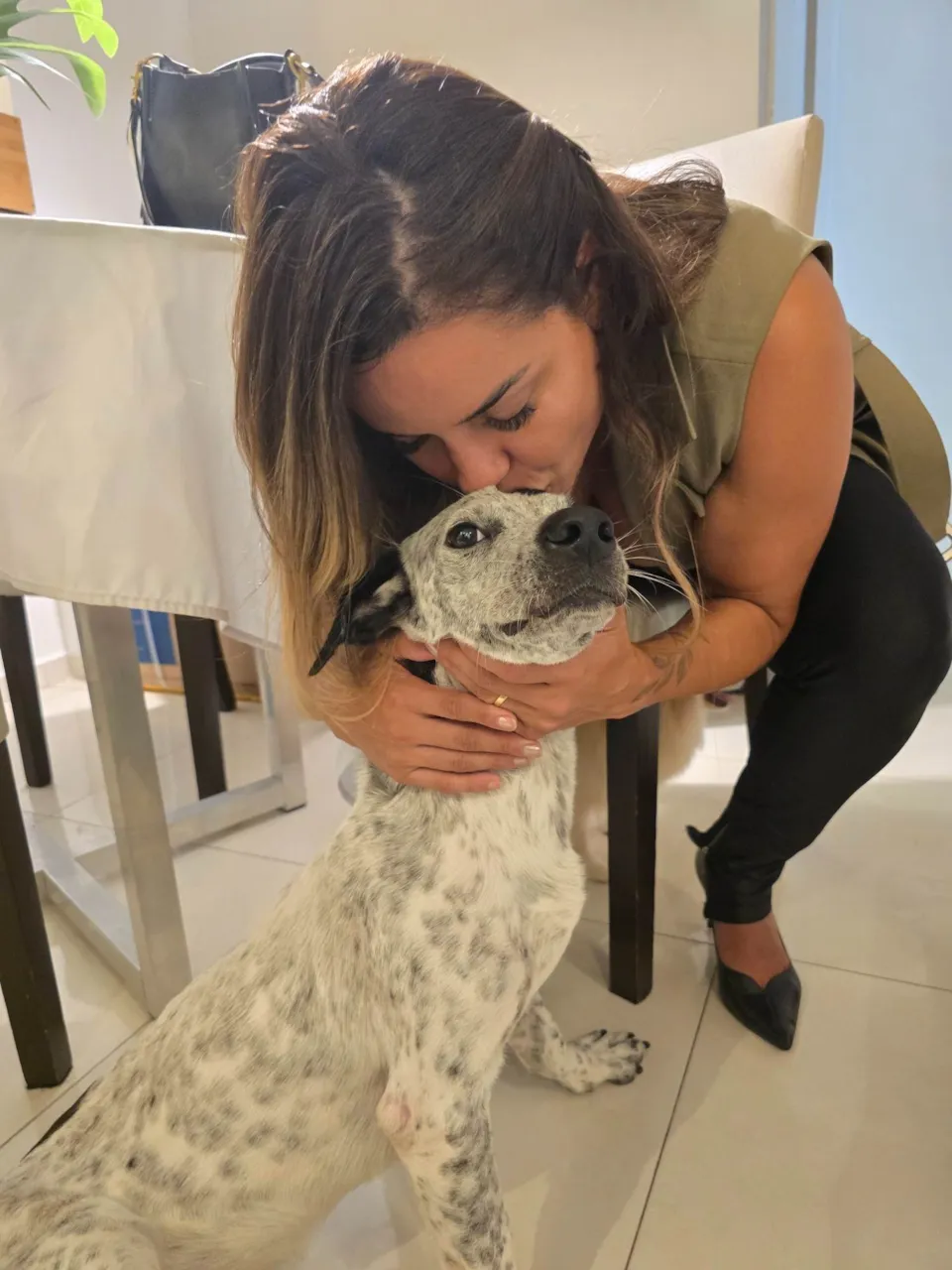 Floquinho foi resgatado se arrastando em uma rodovia, é um cão super dócil,