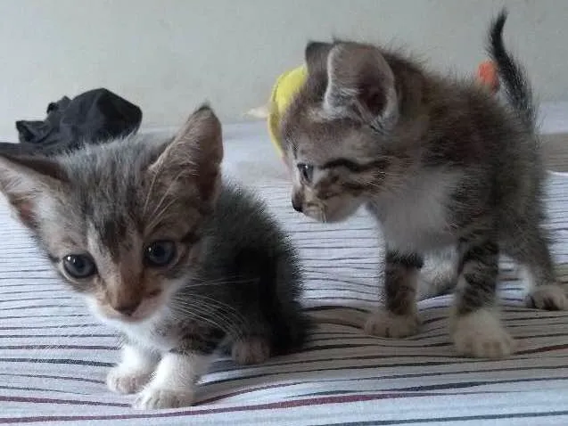 Lindos filhotes de cores diferentes. Já estão desmamados, comem ração e usam apenas a caixa de areia. São 6 no total, apenas 1 macho.
