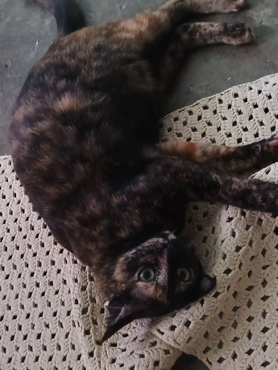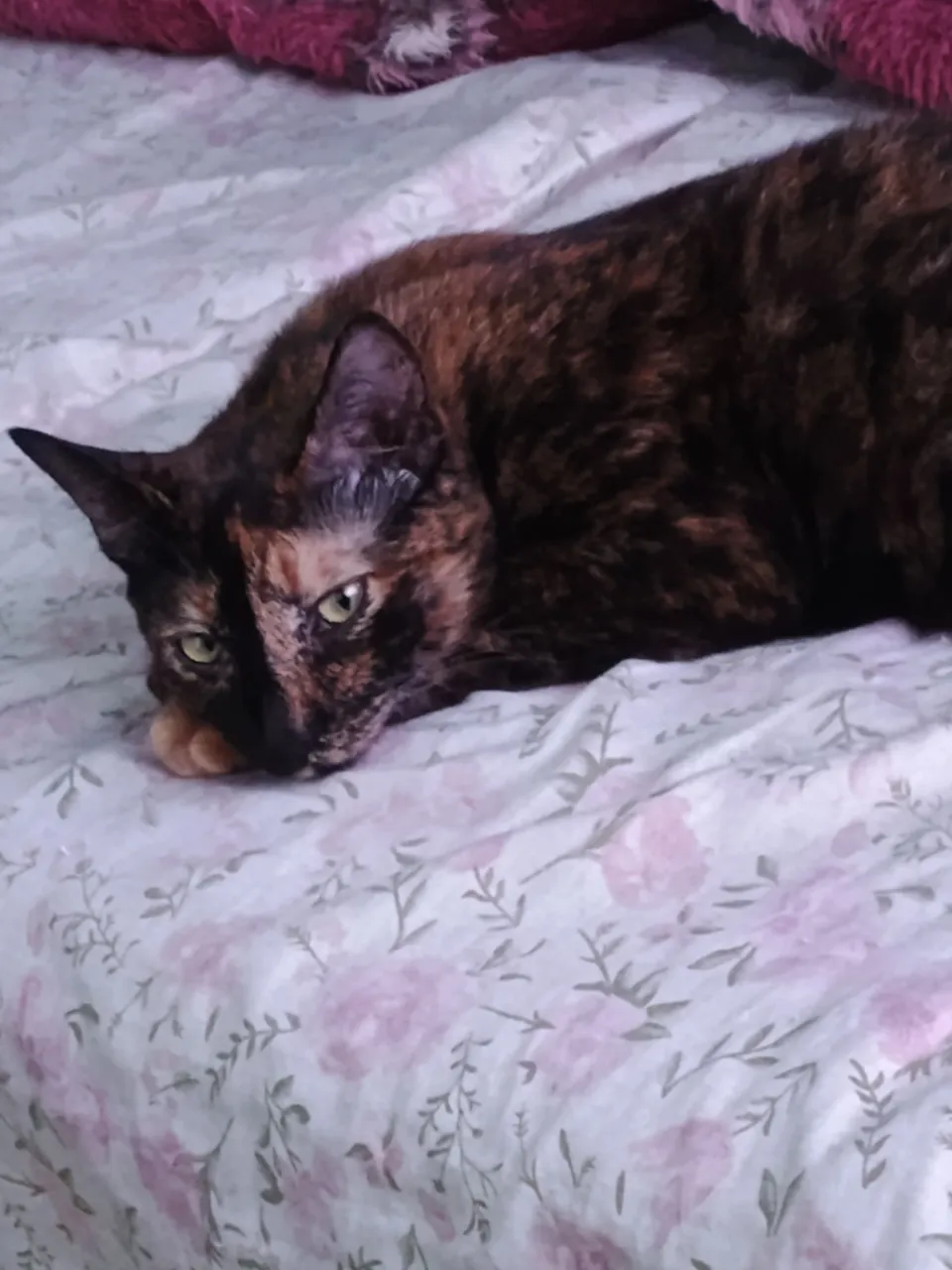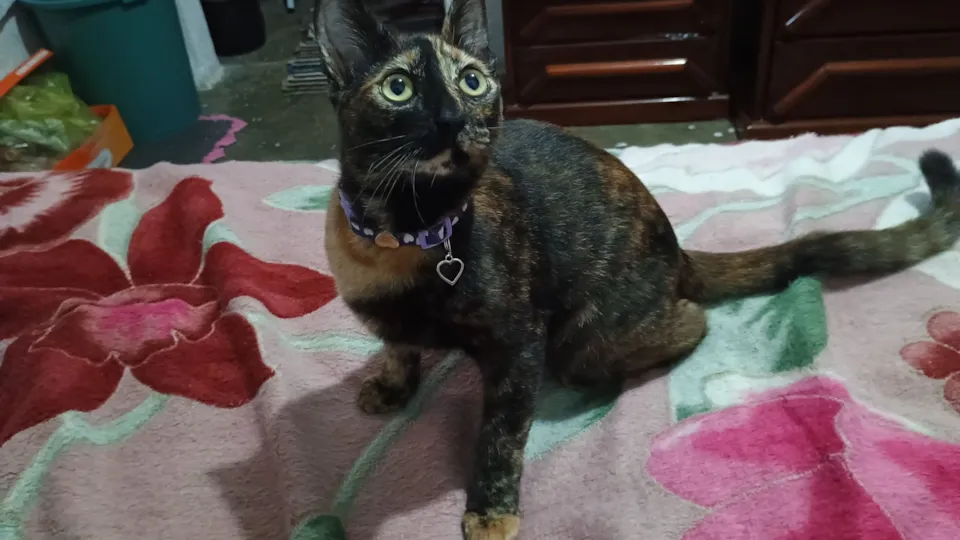 Trixie tem 2 anos e 3 meses de idade, foi castrada com 5 meses na sua moradia comigo, toma remédio contra verme a cada 15-20 dias, não tem pulga e nem carrapato, desde castrada ela apenas come ração e as vezes sachê, nunca tive problemas para acostumar a beber aguá, toma no pote dela por conta própria e usa caixa de areia certinho. Ela é calma, independente e apenas arisca com mudanças. Precisa de um período de adaptação, não é agressiva. Com paciência ela vai criando vínculo e fica tranquila no ambiente, é uma gata bem caseira, não é fã de ficar saindo para rua. O que ajudou muito na adaptação dela comigo foi brincar com ela usando cordas, fitas, bolinhas; ou com qualquer coisa que pode se mover perto para poder "caçar"