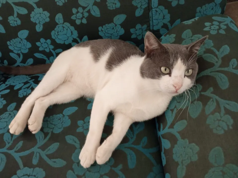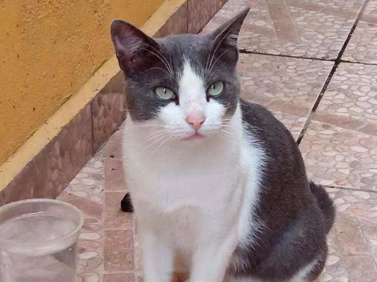 Gato adulto CASTRADO. Completamente saudável. Cor do pêlo preto e branco. Olhos verdes. Gosta muito de brincar e interage bastante.