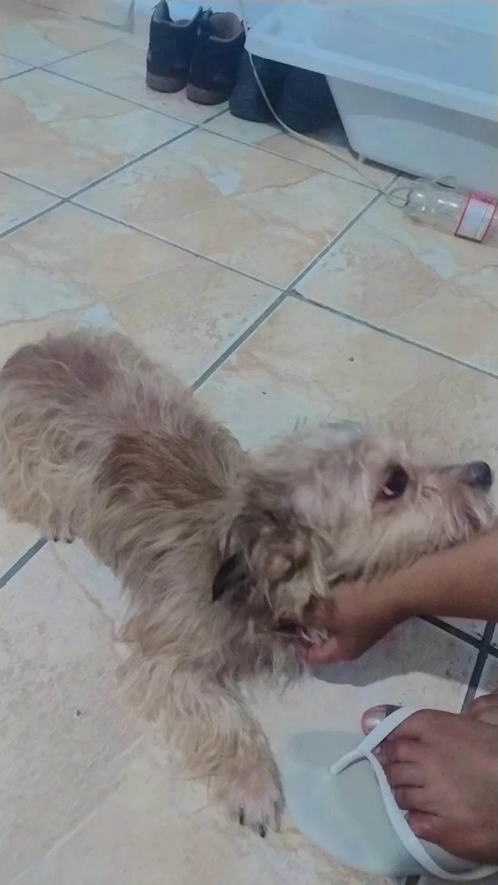 Ele apareceu no meu portão 1 mês e não tenho como ficar com ele por que moro de aluguel