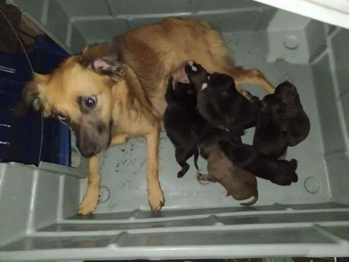 A pessoa encontrou cadela na praia e estava pretinha