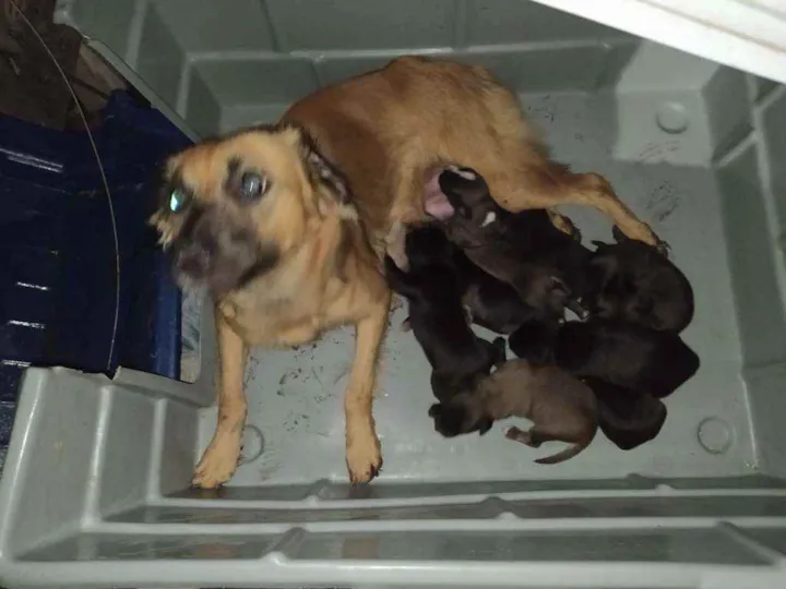 Precisamos urgente achar dono para os filhotes e também para a mãe