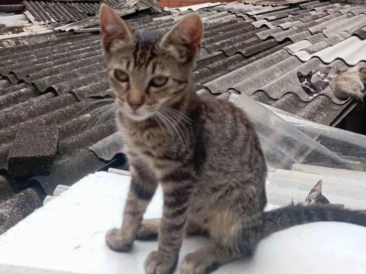 Conheça a encantadora Sky, uma gata SRD de pelagem rajada e apenas 2 a 6 meses de idade! Com seu porte pequeno e um temperamento que vai derreter seu coração, ela é a combinação perfeita de doçura e energia. ??