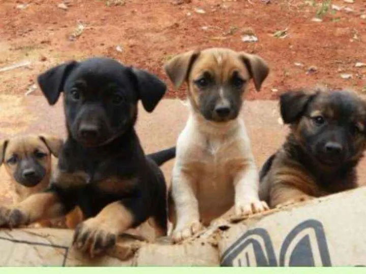 Informações: São de Tambaú- SP, nasceram dia 10/06/2017 (possuem 2 meses), ainda estão sem nome fixo, atendem por apelidos, seu porte creio que seja em torno do pequeno ao médio, sua mãe também é vira-lata porem de porte pequeno, já o pai não sabemos. Como podem ver são lindos e muito sapecas também! *-*