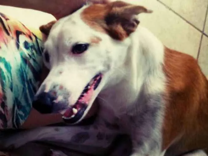 Pelo branco e manchas caramelo, olhar doce e personalidade brincalhona.