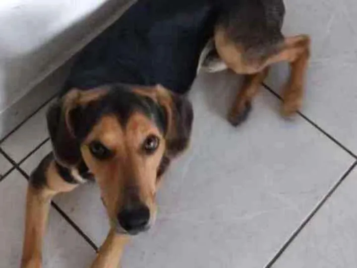 Preto e marrom.Estremamente companheiro. Achei ele perto do Taubaté shopping e trouxe pra casa porque ele ia ser atropelado.Vacinado, Vermífugado, Saudável.Apenas doando porque vou para apto.