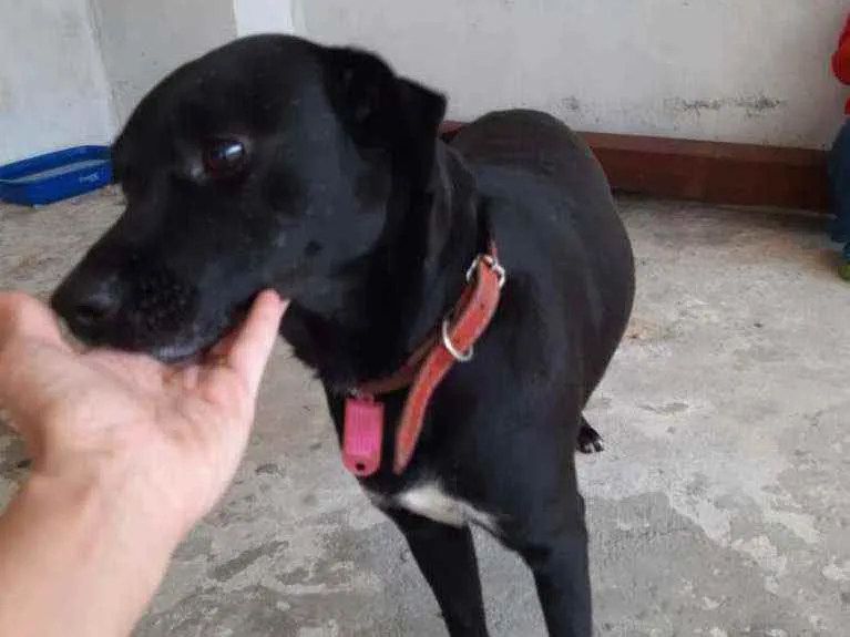 Levamos no veterinário, cuidamos das feridas, ele foi bem maltratado tadinho...pelo que o veterinário disse-lhe ele deve ter uns 4 anos. Ele tem uma certa dificuldade com uma das perninhas as vezes...talvez por ter sido judiando antes...ele toma remedinho todo dia pra evitar as convulsões. Ele é muito bonzinho, tão criança quanto um menino de 2 anos. Meu filho brinca e até coloca a mão na boca dele. Ele ama correr e se derrete com carinhos. Infelizmente não temos espaço suficiente pra ele, que vive na garagem e divide espaço com o carro. Nós saímos muito cedo e voltamos muito tarde, pq trabalhamos em outra cidade. Por isso ele passa o dia sozinho e os vizinhos contam que ele chora muito querendo carinho e sair. No fim de semana que estamos em casa, meu marido leva ele pra correr e ele fica tão feliz e volta tão cansado que até vai deitar. É um companheiro, mas precisa de mais atenção e espaço que infelizmente não temos. Gostaria imensamente de conseguir um lar amoroso onde ele tenha espaço pra correr bastante ou uma família que tenha disponibilidade de levar ele pra passear mais vezes. Temos a casinha dele, os potinhos a ração...e até mesmo os remédios pra vários meses ainda. A caixinha custa R$10 e dura o mês todo.