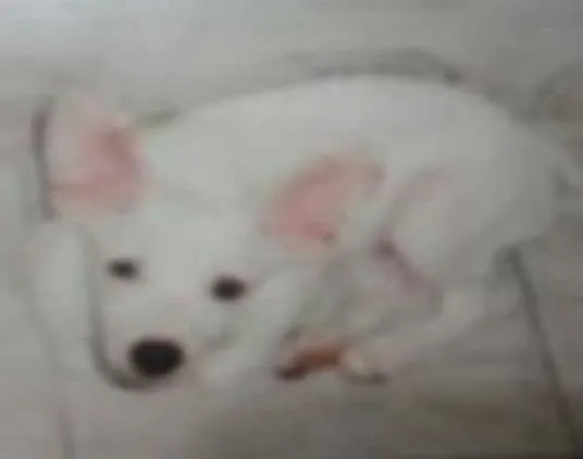Cor Branca, porte Médio,rabo cortado, verruga próximo do nariz, orelhas em pé. Manso e meigo. Ele está com 15 anos e raça semelhante a Fox Paulistinha.