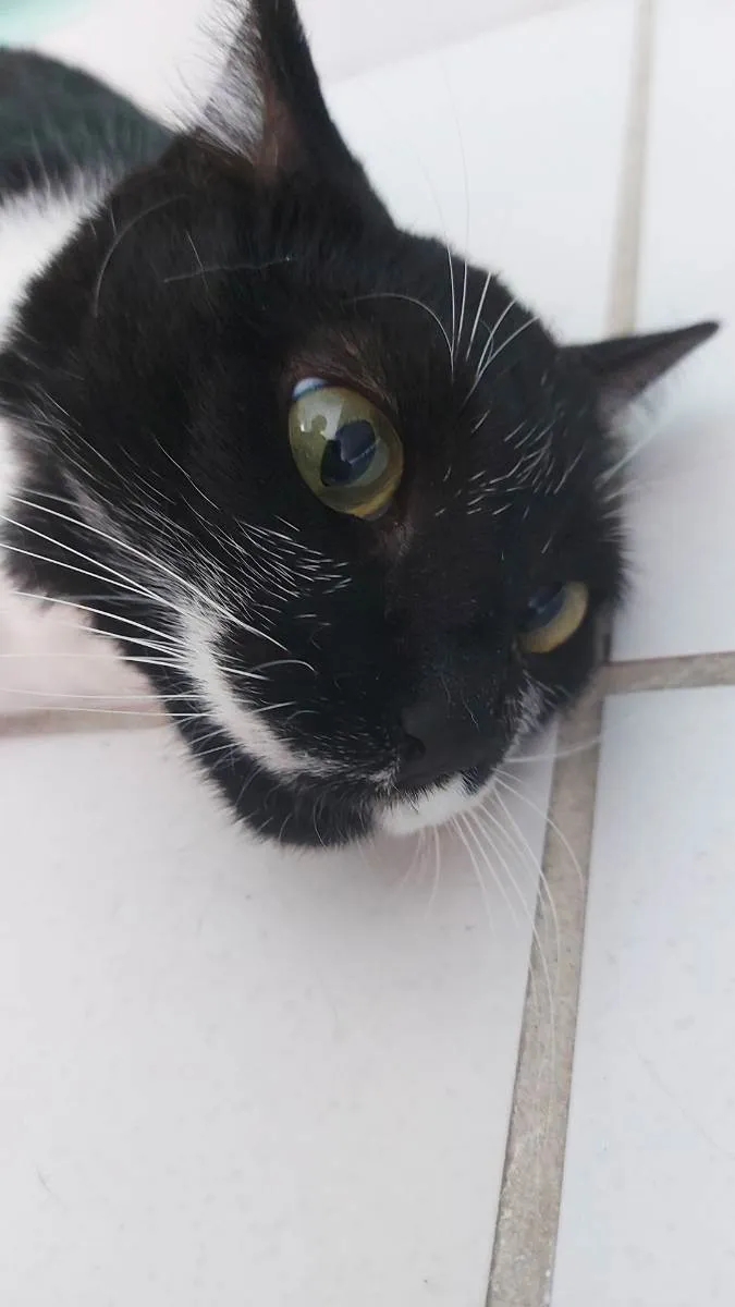 Marri é uma gatinha asustada, dócil e brincalhona. Infelizmente não posso ficar com ela, ela já está vermifugada, castrada e tem cartão de vacina.