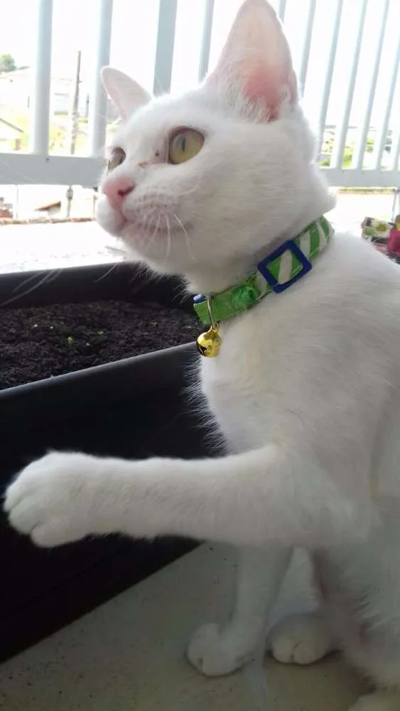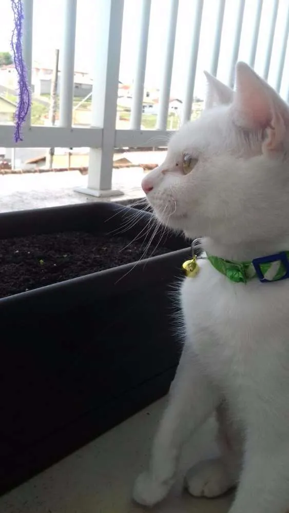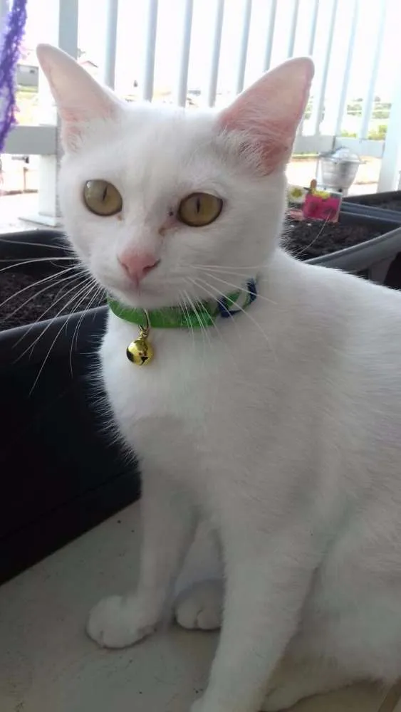 Gatinha muito bonitinha, toda branquinha, têm cerca de 7 meses, já tem a carteirinha com as vacinas dadas, está vermifugada e castrada, ela um pouquinho chorona mas bastante carinhosa.