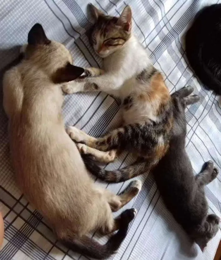 São filhotes fêmeas uma é cinza,1 siamês e uma tigrada estão com três meses