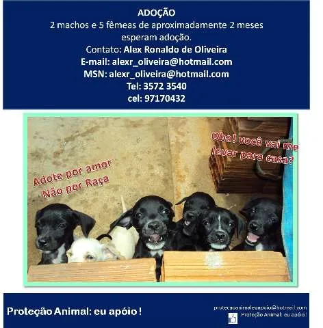 2 machos e 5 fêmeas de 2 meses aguardam adoção.