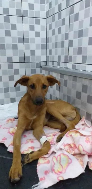 Resgatei um cachorro filhote na estrada da Boiada (Rod Viscondi de Porto Seguro), levei-o no veterinário pois tinha sido atropelado. Ele está bem agora, mas não posso ficar com ele, já tenho dois caes e por hora não posso ficar com mais um.