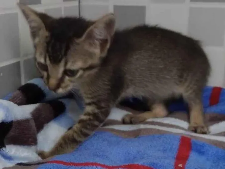 Essa gatinha foi encontrada e resgatada por minha irmã. Ela tem aproximadamente 1 mês, já come ração de filhotes, será vacinada e vermifugada, infelizmente foi abandonada aqui próximo à minha casa.