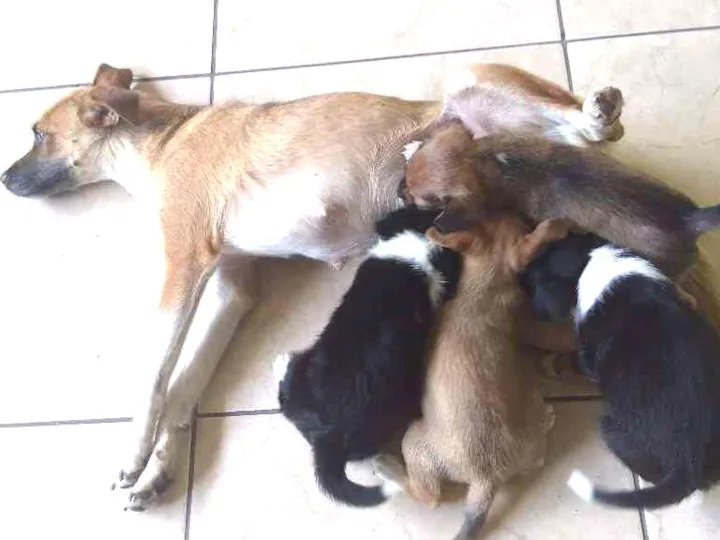 É uma cachorra que deu cria de três cachorras fêmeas elas têm 1 mês a mãe tem 1 ano quero doar a mãe com os filhotes a Meg que no caso é a mãe é amarela a Ritinha é marron claro, a Bibi é marron escuro, e a Pandora é preta e branca enteressados entre em contato cmg, grata desde já.??