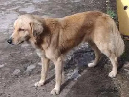 Cão apareceu na rua de casa e está dormindo na rua. Infelizmente não podemos adotar ele porque temos outro cachorro macho e brigaram quando tentei trazê-lo para dentro. Ele é lindo e dócil, cão muito educado e aparentemente bem cuidado.