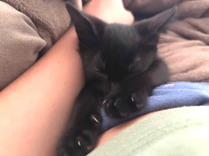 Conheça a Luna, uma adorável gatinha fêmea SRD (sem raça definida) de pelagem preta, com menos de 2 meses de idade e porte pequeno. Essa bolinha de pelos é a combinação perfeita de doçura e brincadeira! ??