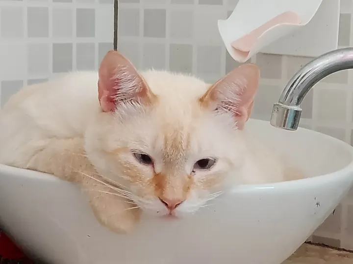 Conheça o Tobias, um lindo gato macho de 4 anos, da raça SRD-ViraLata, com uma pelagem branca impecável. Ele é um gato de porte médio, castrado e com um temperamento incrível. Tobias é dócil, calmo, brincalhão, sociável e independente, mas também é carente e adora receber carinho. Ele se dá bem em apartamentos, é sociável com outros gatos, crianças, desconhecidos e idosos. Tobias não é exigente com comida, aceita qualquer ração e adora um sachê. Ele toma banho, pode reclamar um pouco, mas não fica agressivo. Recomendamos apenas cortar as unhas antes do banho para evitar arranhões. Se você está procurando um companheiro amoroso e tranquilo, Tobias é o gato perfeito para você. Venha conhecê-lo e se apaixonar!
