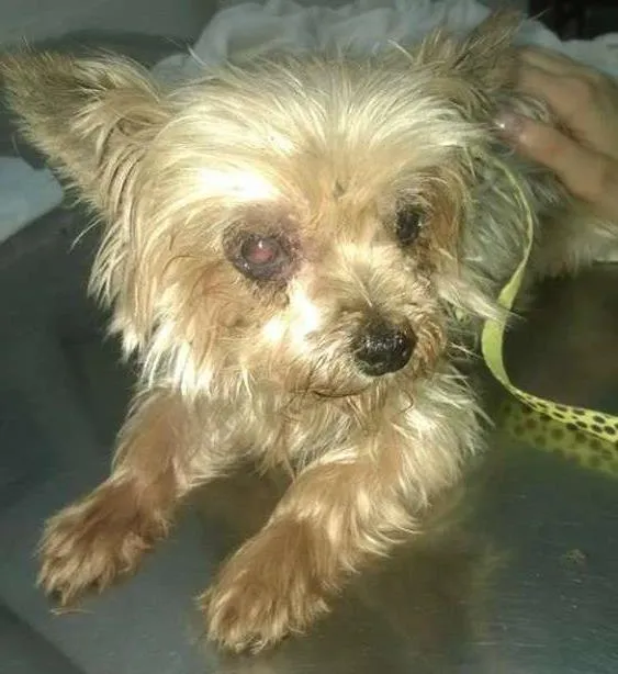 Achei o animal na rua atrás de casa. Cego de um olho e quase do outro, ele é velho, tem tártaro, a perna de trás dele foi destroncada. Nao posso ficar com ele no momento, procuro alguem que possa ficar c ele e dar amor ao bichinho.