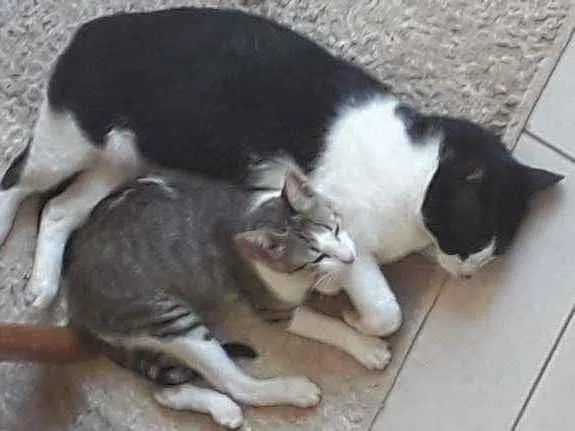 Ela foi abandonada. Chegou muito magrinha e debilitada. Mas sempre foi carinhosa e conquistou a todos, humanos, gatinhos e caezinhos que ja estavam lá. Já esta castrada.