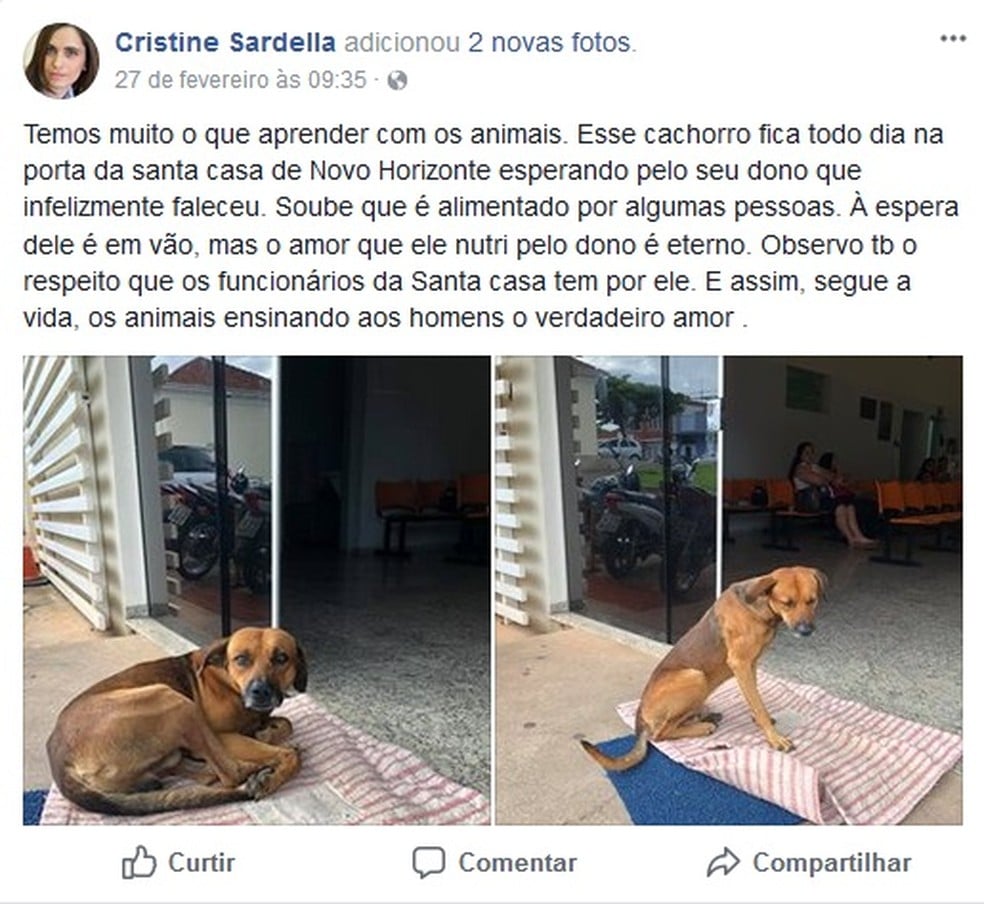 Postagem feita pela Cristine Sardella que foi ao hospital e se comoveu com a lealdade do cão (Foto: Reprodução/Facebook)
