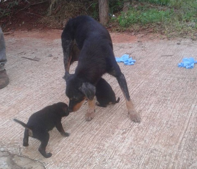 Após o resgate, a cadela - e mãe dos filhotes - foi ao encontro da equipe para "agradecer" pelo socorro, conta o cabo Ademir Miranda.