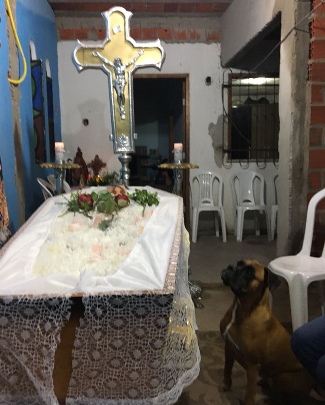 Belinha o tempo todo acompanhou o velório ao lado da dona (Foto: Dionísio Neto/Arquivo pessoal)