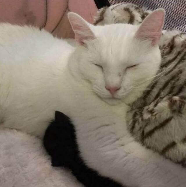 “O papel de Benny é conforto e socialização”, disse Ellen. “Ser capaz de aconchegar-se contra outro gato e não contra um bicho de pelúcia faz maravilhas para o bem-estar mental deles.”