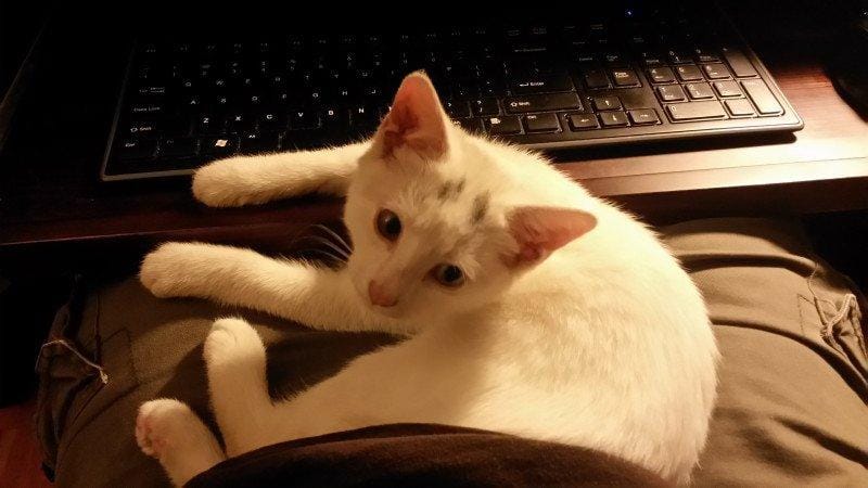 O jovem até tentou ir embora depois de ter dado comida suficiente, mas a gatinha começou a seguir seus passos. Foi então que ele reparou que a gatinha tinha um olho de cada cor e ficou apaixonado! Como resistir? Acabou levando a gatinha pra casa e hoje, Luna e seu salvador são inseparáveis.